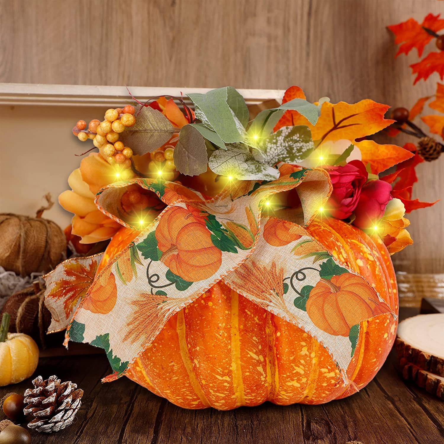 This Thanksgiving pumpkin isn’t like the rest… With bright lights, colorful ribbons, and artificial flowers intertwined, this pumpkin will stand out from the others.
