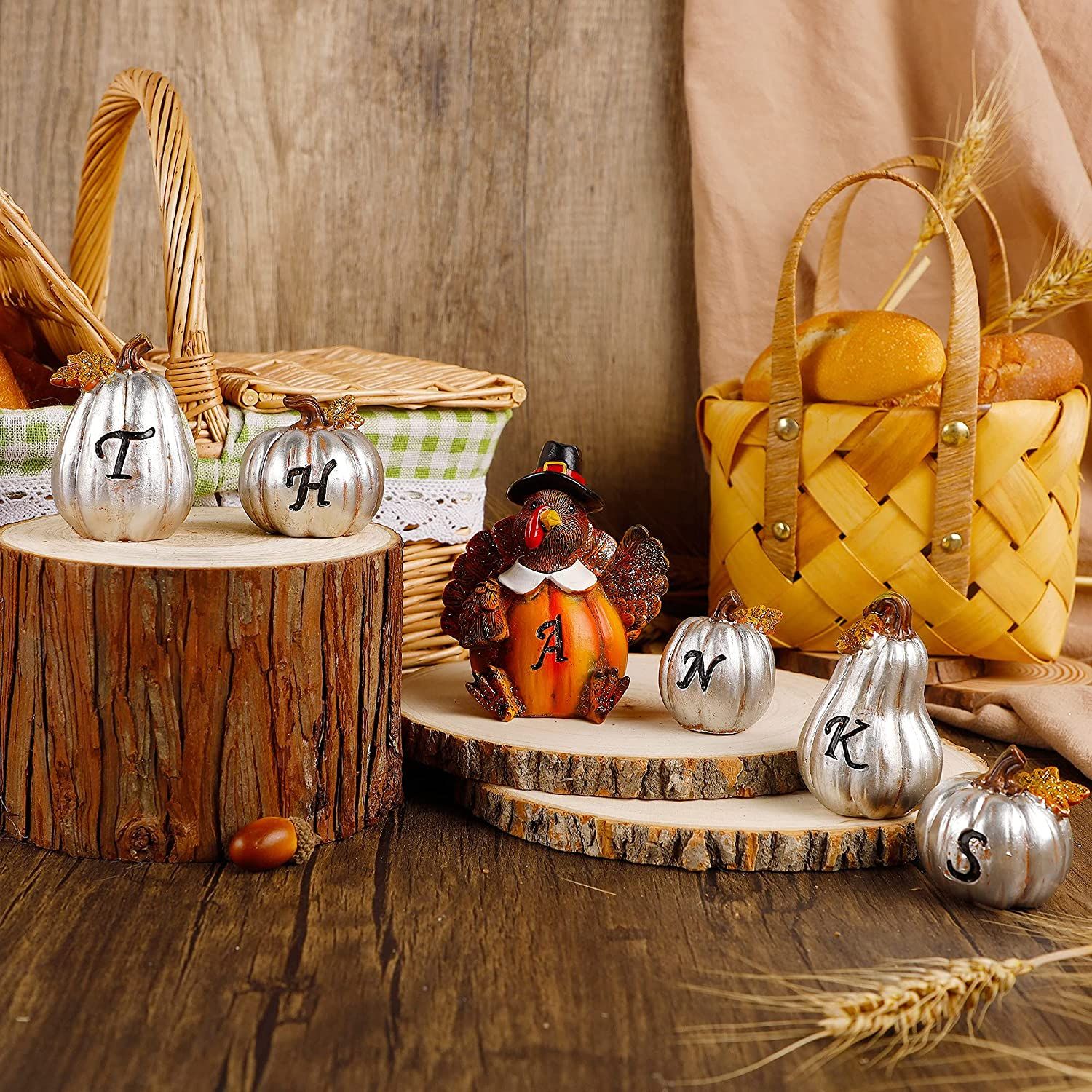 These resin pumpkins with positive messages make an ideal table centerpiece.