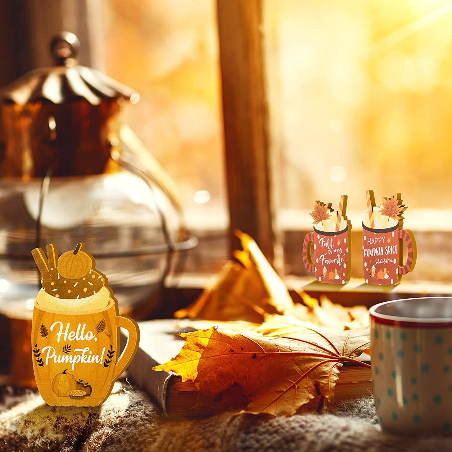 Are you a coffee lover who’s looking to put a unique spin on your tablescape? Look no further… These coffee cup-shaped wooden signs are just what you need. With pumpkin and fall-related phrases on the front, these signs are sure to leave your guests feeling amused.