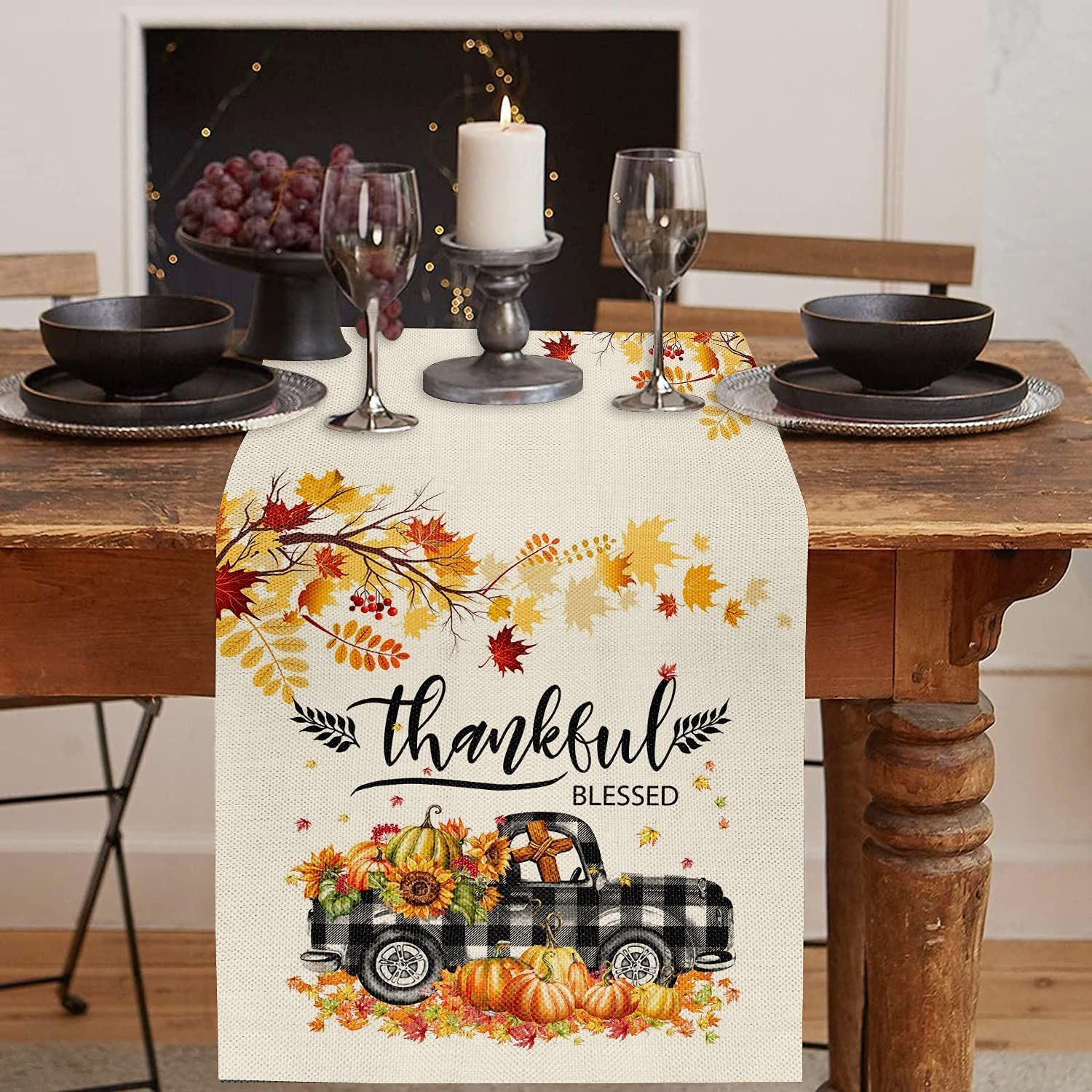 Don’t want to cover your whole table with a cloth but also want to keep it protected? You should try a runner. This “thankful” runner is the ideal way to shield your table from hot plates and scratches while also embracing the season.