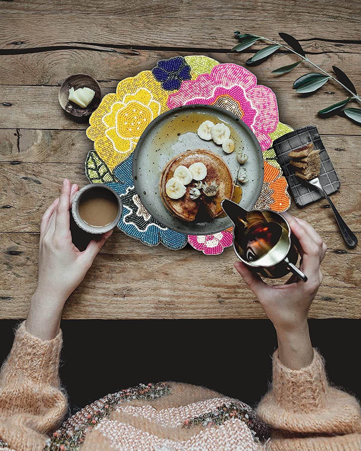 Made with high-quality glass beads on a polyester backing, these placemats are super unusual and are sure to attract questions from visitors. Not only are they just what you need for fall, but they’re also just what you need all year round!