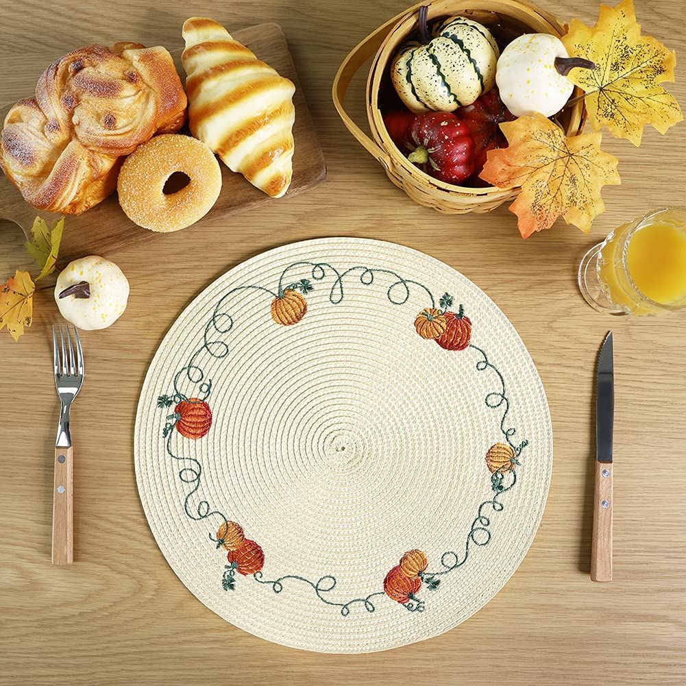 With small yellow and orange pumpkins embroidered onto a beige background, these placemats are incredibly cute yet useful. They’re super easy to care for and can be kept looking fresh with a simple wipe using a damp cloth.