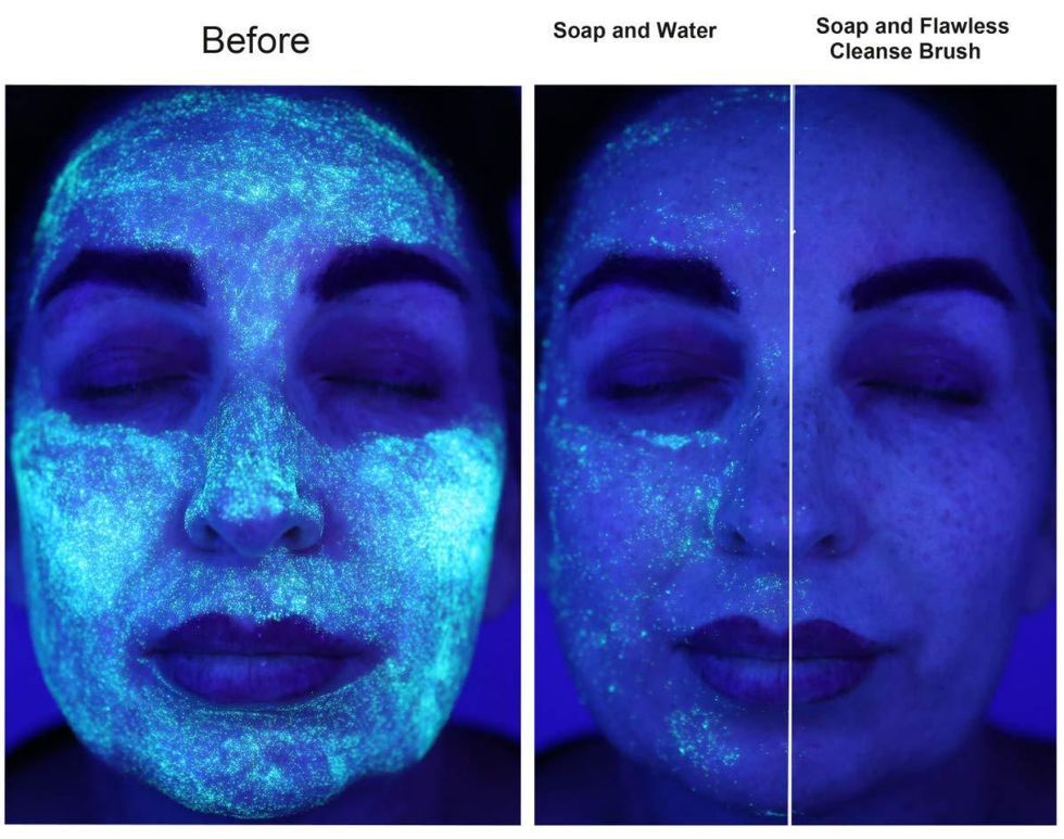 If that photo doesn’t have you reassessing your nightly cleaning ritual, I don’t know what will. The best of the images on the far right was achieved with the Finishing Touch Flawless Cleanse silicone face scrubber and cleaner, which features both a silicone cleaning surface and a massaging system beneath designed to promote a healthy glow and stimulate collagen production. You customize the cleaning level.
