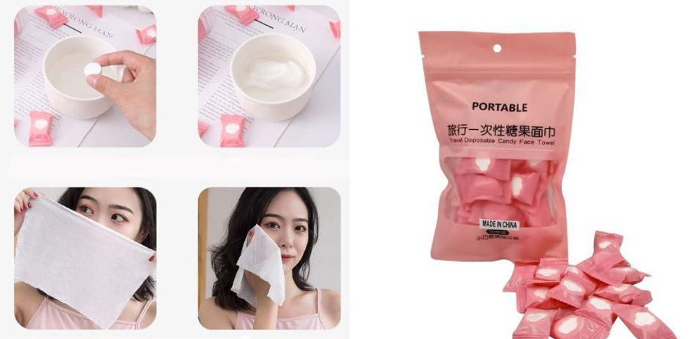 Whenever I’m going outdoors all day or traveling, these portable cotton washcloths are my go-to essential product. They’re made of non-woven cotton linen and all you have to do is put them in cold or warm water for a few seconds and they expand to become a towel. They’re perfect to remove makeup, wipe your fingers or face to keep your skin clean.