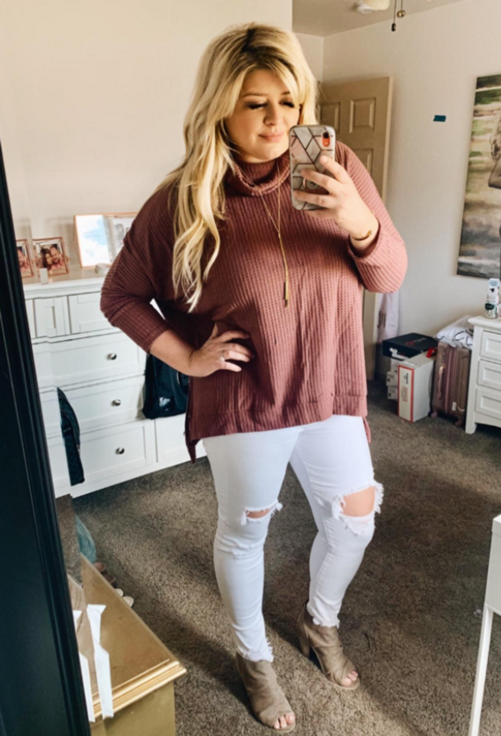If you want to add a bit of coziness to your jeans and tee but don’t want to overheat, check out this loose turtleneck that’s as flattering as it is comfy. The waffle knit texture elevates it from basic, and it comes in 22 pretty colors to mix and match with all your leggings and skinnies. It’s longer in the back and at the sides so it’ll offer some bum coverage, too!
