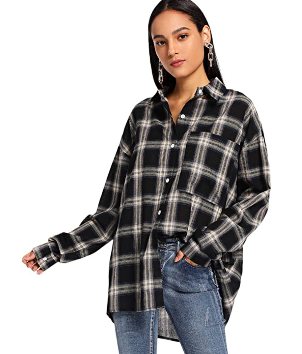 This oversized plaid shirt looks amazing with jeans or leggings, and it’ll definitely cover your butt so no fear of indecent exposure in tight pants! It comes in 43 plaid choices and looks great worn open over a longline yoga bra when it’s not too cold out. It’s a trendy piece that you’ll be able to wear for a long time to come since it’s classic at the same time.