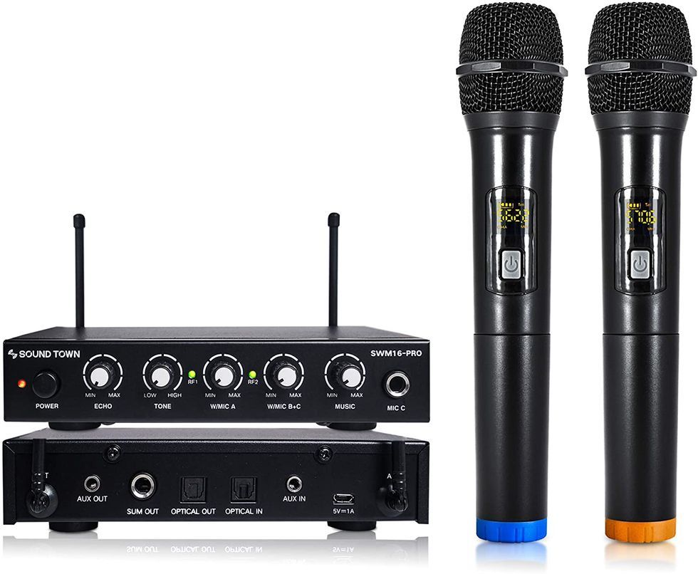 Hey, DJ! Introducing your new favorite at-home gadget to turn quiet nights into forever memories. The Sound Town 16 karaoke machine features a mixer so it was definitely designed for someone who knows what they’re doing but when it comes to the back-up singers, wireless microphones allow them to dance to the beat of their own drums.