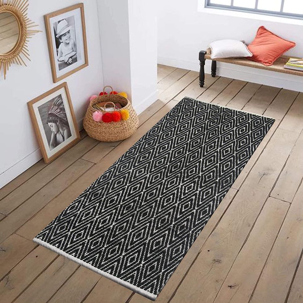 Transform your entryway with this runner rug that features a handwoven design on both sides for added wear. The rug is durable and long-lasting thanks to its natural cotton fibers that absorb spillages, making it ideal for the kitchen.