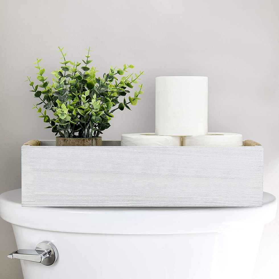 One impressed reviewer wrote: “It is a perfect fit on the back of my toilet and has changed the look of the bathroom. Quaint, and is perfect for the French farmhouse look, or a modern look decor. I can’t say enough. Highly recommend.”