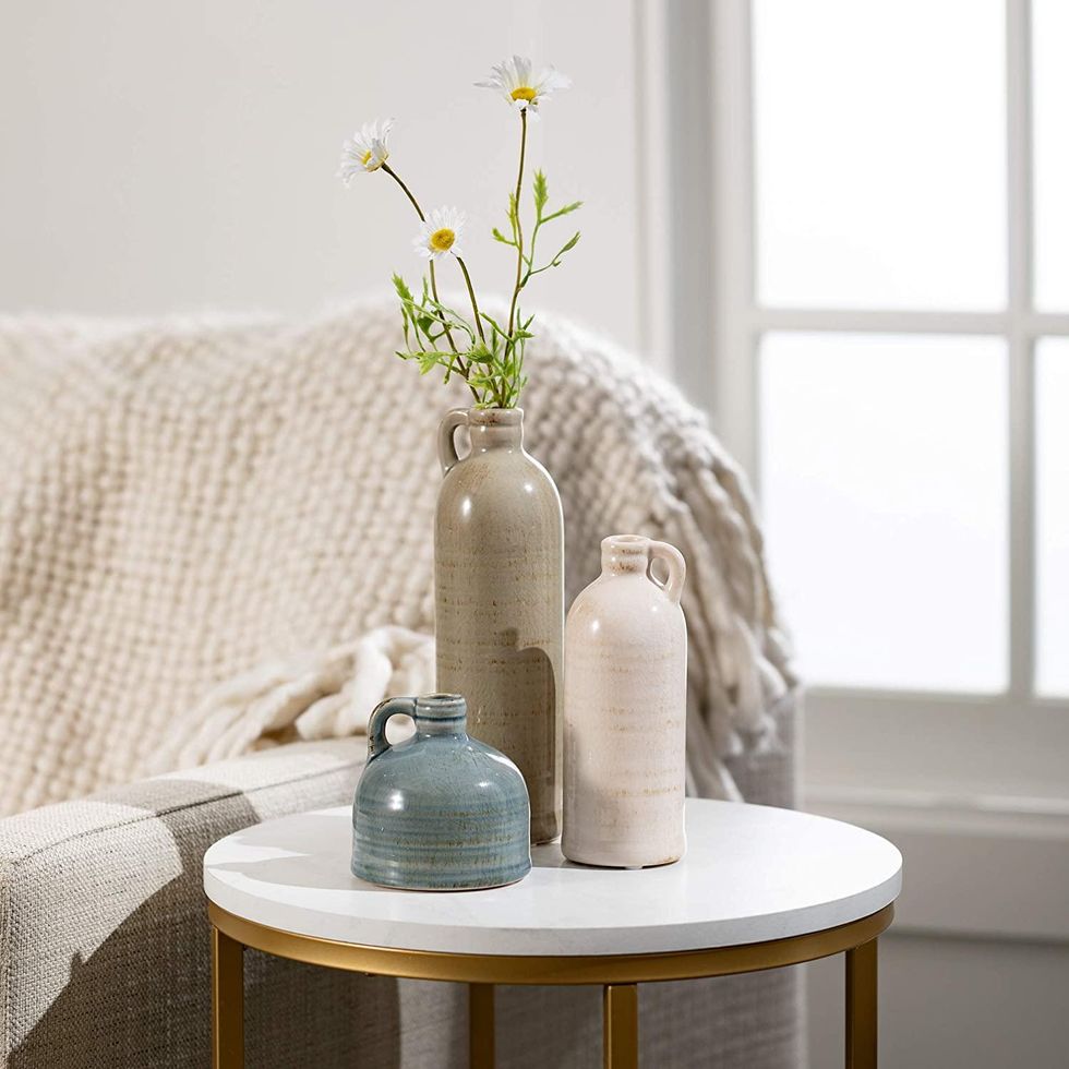 These rustic jugs can be used to hold flowers or decorative sticks and are ideal statement pieces for coffee tables. The 3 colors are subdued and will go perfectly with any minimalistic space, bringing a modern chic feeling to any area of the home.