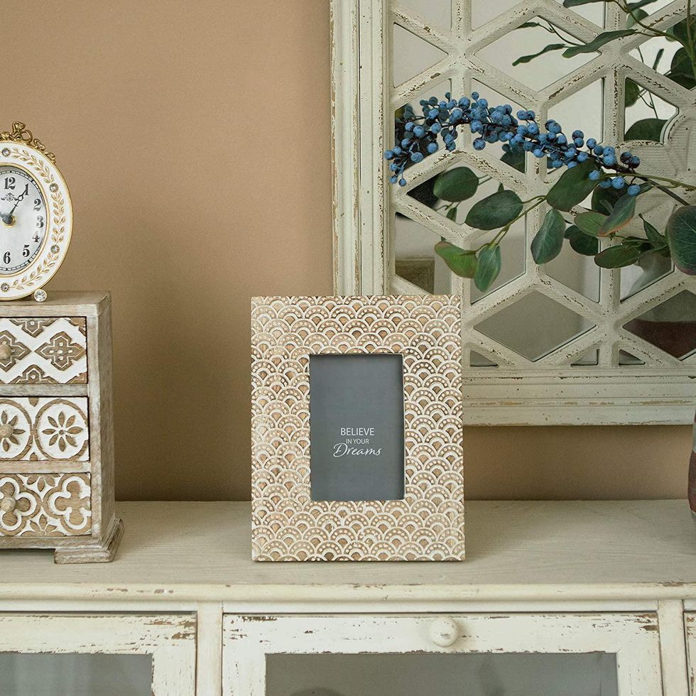 This boho-style wooden frame is hand carved featuring a white distressed finish to transform your place with bohemian elegance. You might as well stock up because once your friends and family see it, they’ll all want one for themselves.