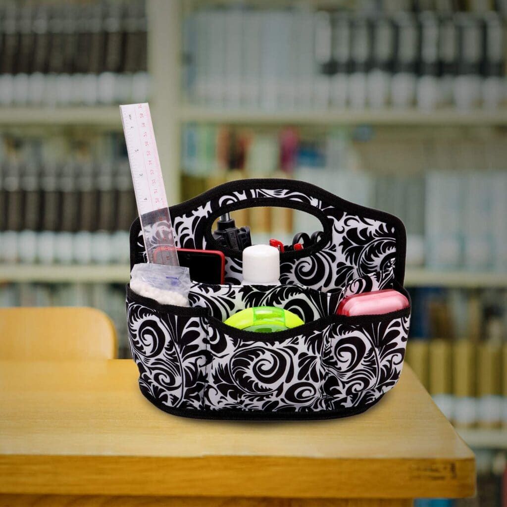 Don’t just throw your most important items in a messy drawer. Take the office supplies you reach for the most often and sort them into categories in this helpful caddy.
