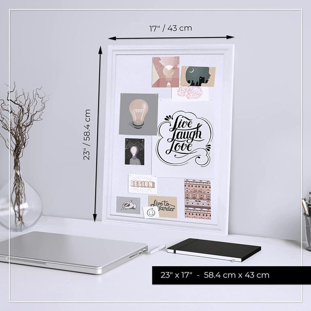 Adding a vision board to your home office puts the “fun” in functional. It can help you focus better on your goals while also becoming a decor focal point. Use this corkboard as a blank canvas to manifest your goals and ideas.