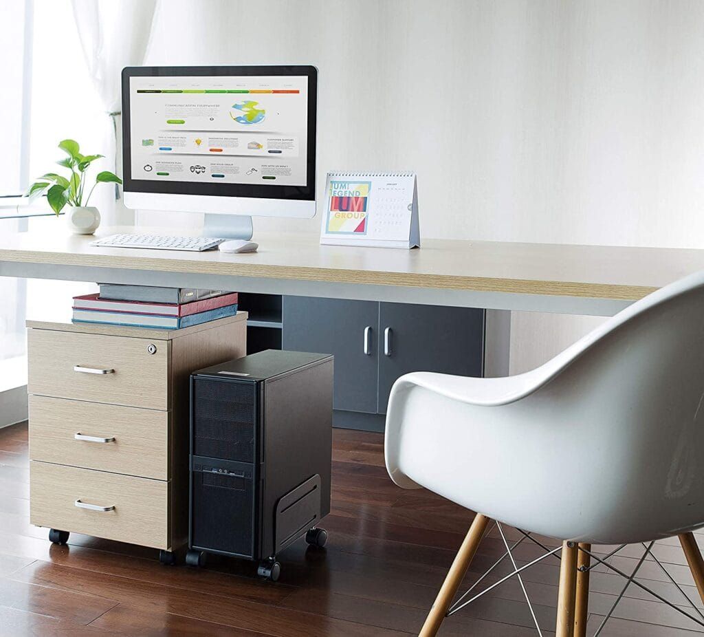 Are you team standing desk or sitting desk? Either way, adding a keyboard tray can make typing feel way more comfortable. Personalize it to your height so you can type with more ease.