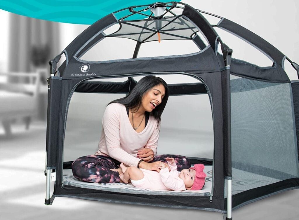 Amazon’s choice for a pop-up playpen, this Pop ‘N Go option has been rated 4.7 out of 5 stars by happy customers and is an absolute essential for your baby registry. With a useful carry bag that lets you bring it on your travels, a durable fiberglass frame that will withstand a little rough and tumble, and a UV cover that protects your baby from the sun, it’s a great pick.