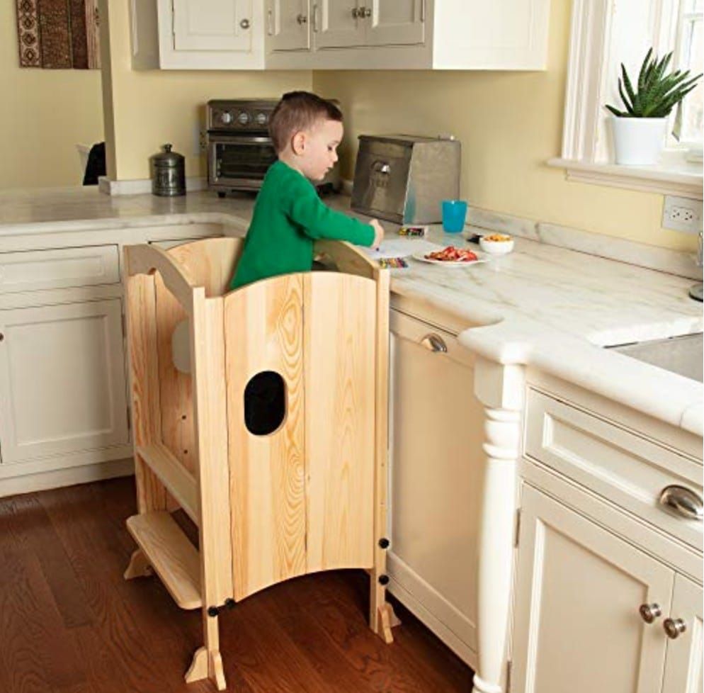 I really wish I’d thought about getting this as a gift for my brother when my nephew was born. Ever since he could walk, he’s been trying to help out in the kitchen, learning to bake, watching us wash up, and just being desperate to see what’s above his little head. This tower step stool is the safest way to do that with incredible quality construction, making it super secure.