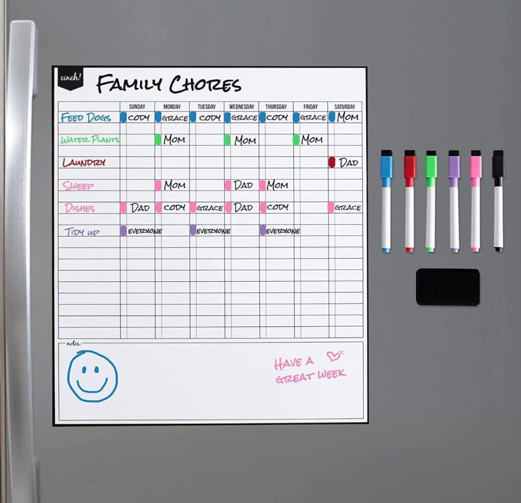 If you’re working on multiple tasks, deadlines, and projects it can be difficult to know what to prioritize and what to spend your time on. This dry erase chart lets you plan your days out easily, clearly seeing what you have to do and when items are due. Plus, it’s magnetic so you can stick it to any magnetic surface in your home.