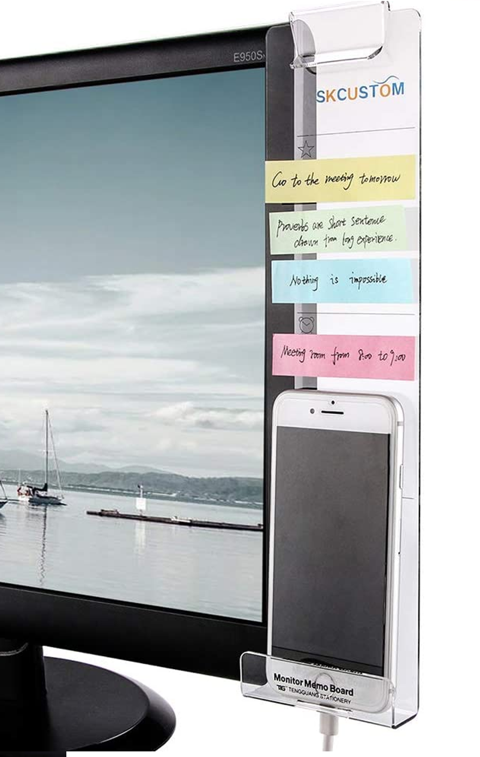 I’m notorious for leaving my phone on vibrate under the covers of my unmade bed. There’s no hope of remembering to check notifications if it doesn’t come to my email. And that grocery list just ain’t gonna, no matter how far into the future we go. Having these reminders on the side of my monitor via this snap-on board, therefore, has been a huge help. It even has a spot for my phone with a slot for a charging cable.