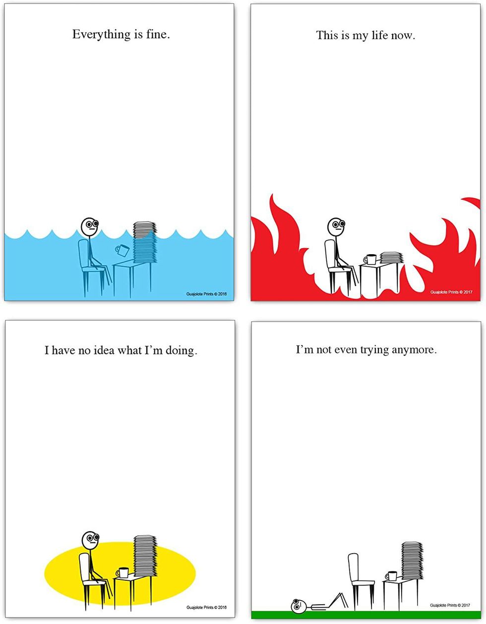 We’ve all felt this way during a workday, am I right, guys? Each of these memo pads sports a funny little comic and it brings a bit of joy and relief during those otherwise dreary, drab, and draining days. No matter how much you might like your job, we’ve all felt like we ‘didnt know what we were doing’ or that ‘everything is fine’ when it just so is not.