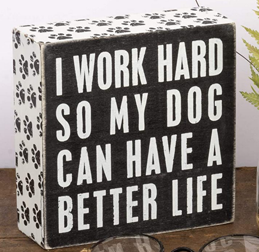 Some people have kids and other people, like me, also have kids but mine walk on four legs and bark at the mailman (though I suppose if your human child does that, too … it’s just a phase?) Anyway, this painted plaque is a cute and funny reminder as to why I work as hard as I do. Not only do I have my own mouth to feed, but a couple of dependent, needy creatures who can’t even stay by themselves in the living room while I go to the bathroom. Just like you’d decorate your office at work, you should add some to your home office, too.