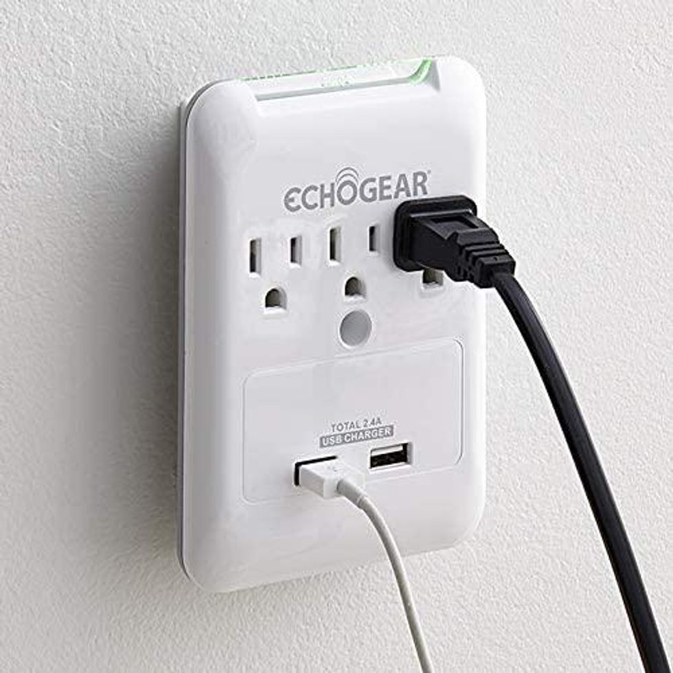 Reviewers rave about this super-slim surge protector that gives you three outlets and two USB charging ports. It’s safety first with this one since it has built-in fireproof technology to handle surges. There’s even a green nightlight on the top for convenience.