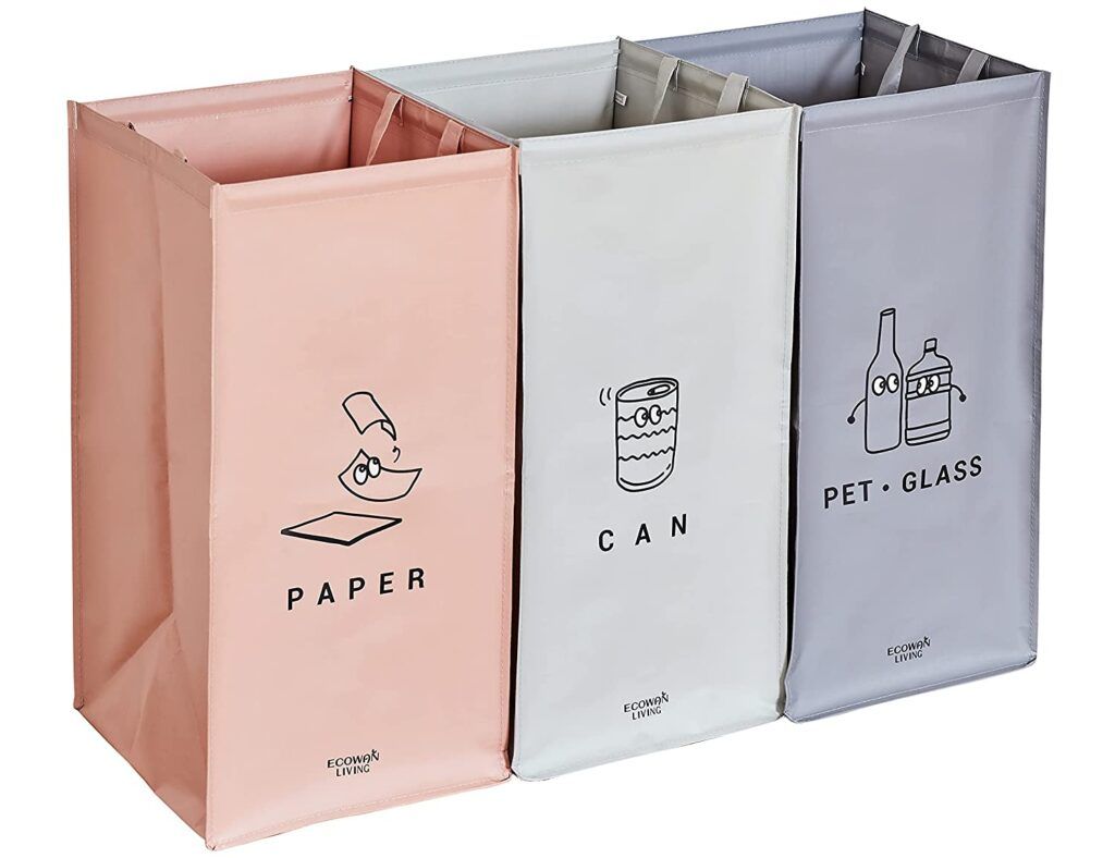 Sorting out recycling is one of the duller tasks in life, but this set of three bags aims to make it easier at least. They are connected via Velcro, so can be easily separated and then carried out by their handles when the time comes for them to be emptied.