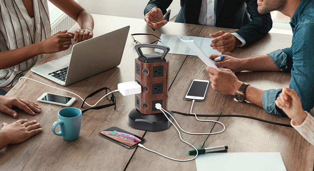 Extension cords don’t have to be ugly – this surge-protected tower extension cord manages to be both stylish and functional. With four USB ports alongside the ten ordinary AC outlets, it features more than enough power points. Reviewers particularly praise the switches next to the sockets, allowing for you to control the power supply for when you do or don’t need it.