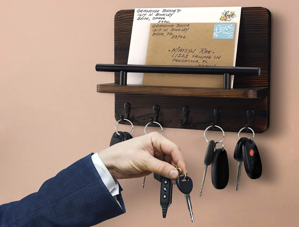 This key rack mounts to the wall and gives your keys a special place to call home. It’s sturdy enough to hold coats, too.