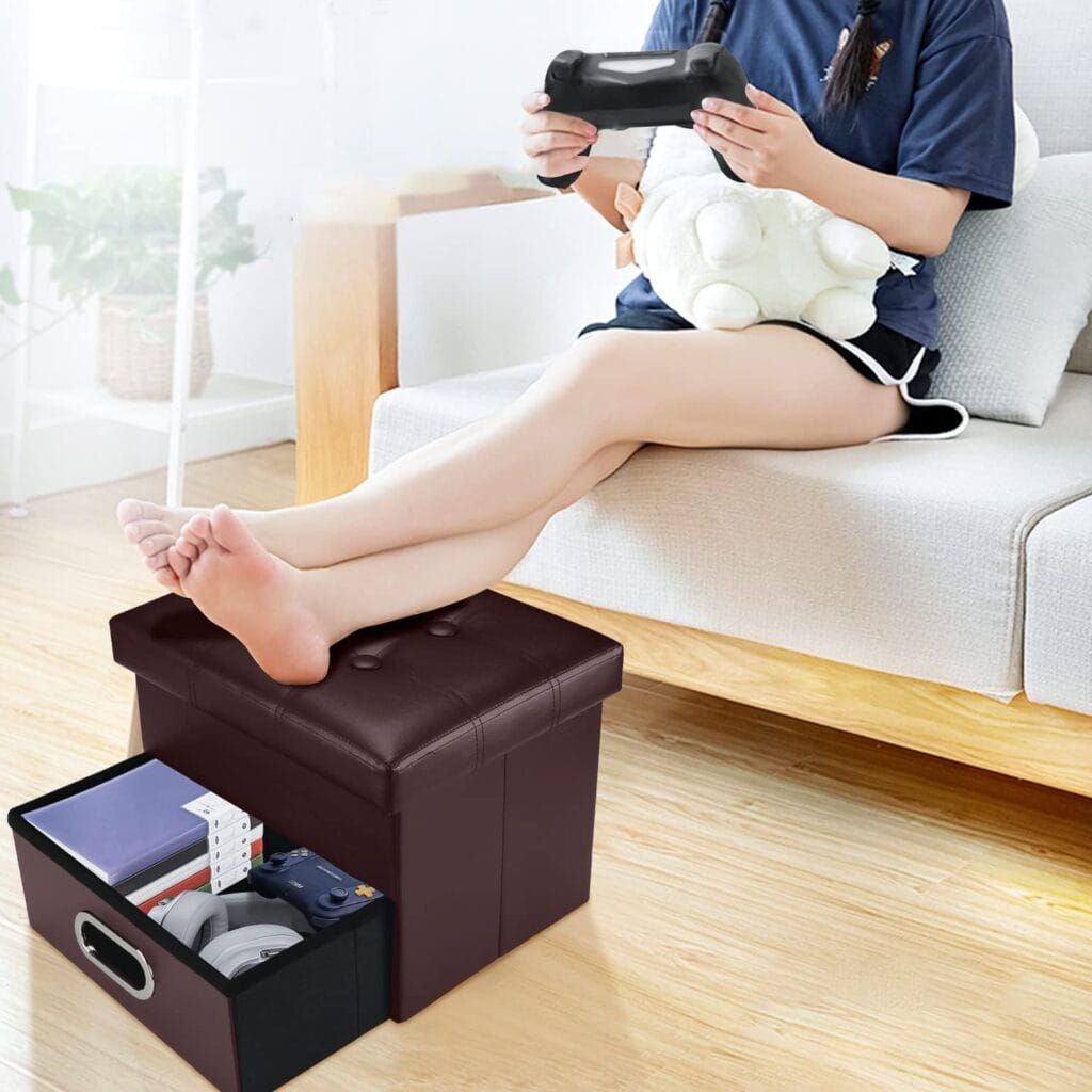 I think most of us are constantly low on storage space – this hidden storage ottoman is a great solution. Whether it be workout gear, toys, or just plain old miscellaneous stuff that you need to store, this box doubles up as a footrest.