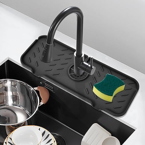 That water hiding near your faucet has gotten a little too comfortable. Time to send it home with this silicone faucet mat. Designed with drainage in mind, it has two openings whooshing water back into the sink. So say goodbye to wiping that space and let this mat do the work for you.