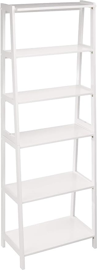 This bookshelf has a “ladder” design that makes the shelves different size so you can store books and trinkets. Shoppers say installation is a breeze!