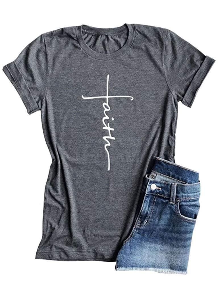 What better way to show off your love for the Lord than wearing it! This stylish Faith T-shirt is not only a testament to your faith, but it’s also a great conversation starter. Let others see how God has blessed you with a spirit of style and grace!