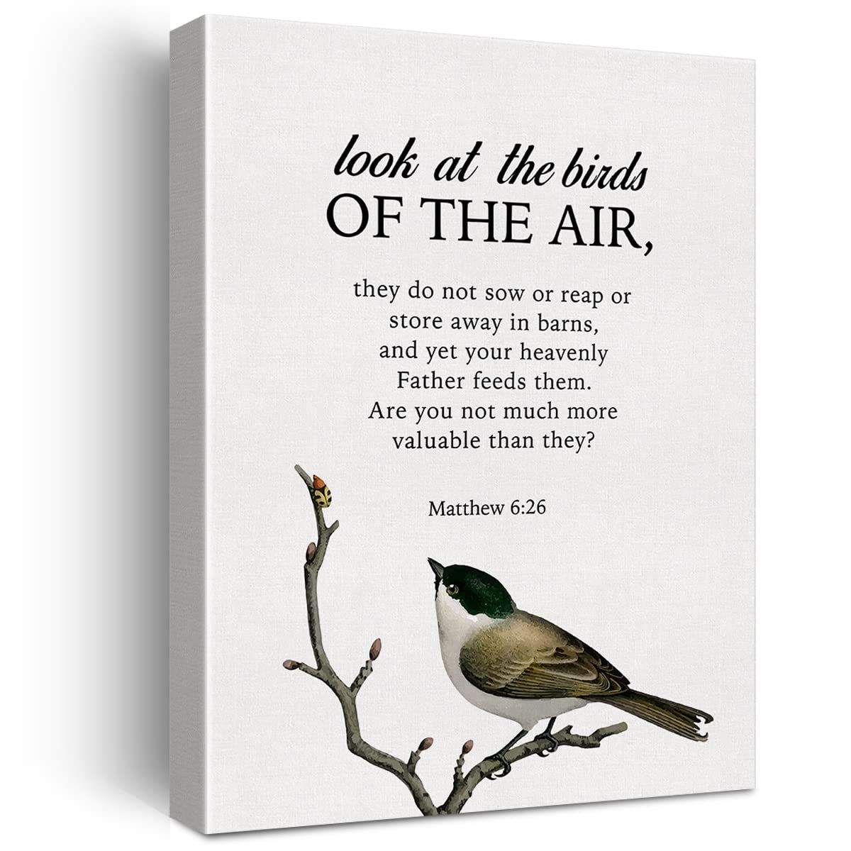 Sometimes we need a daily reminder of God’s love and care for us. This beautiful Bible Verse Canvas does just that. Matthew 6:26 tells us, ‘Look at the birds of the air; they do not sow or reap or store away in barns, and yet your heavenly Father feeds them. Are you not much more valuable than they?’ Share this special gift with someone who needs a touch of His grace.