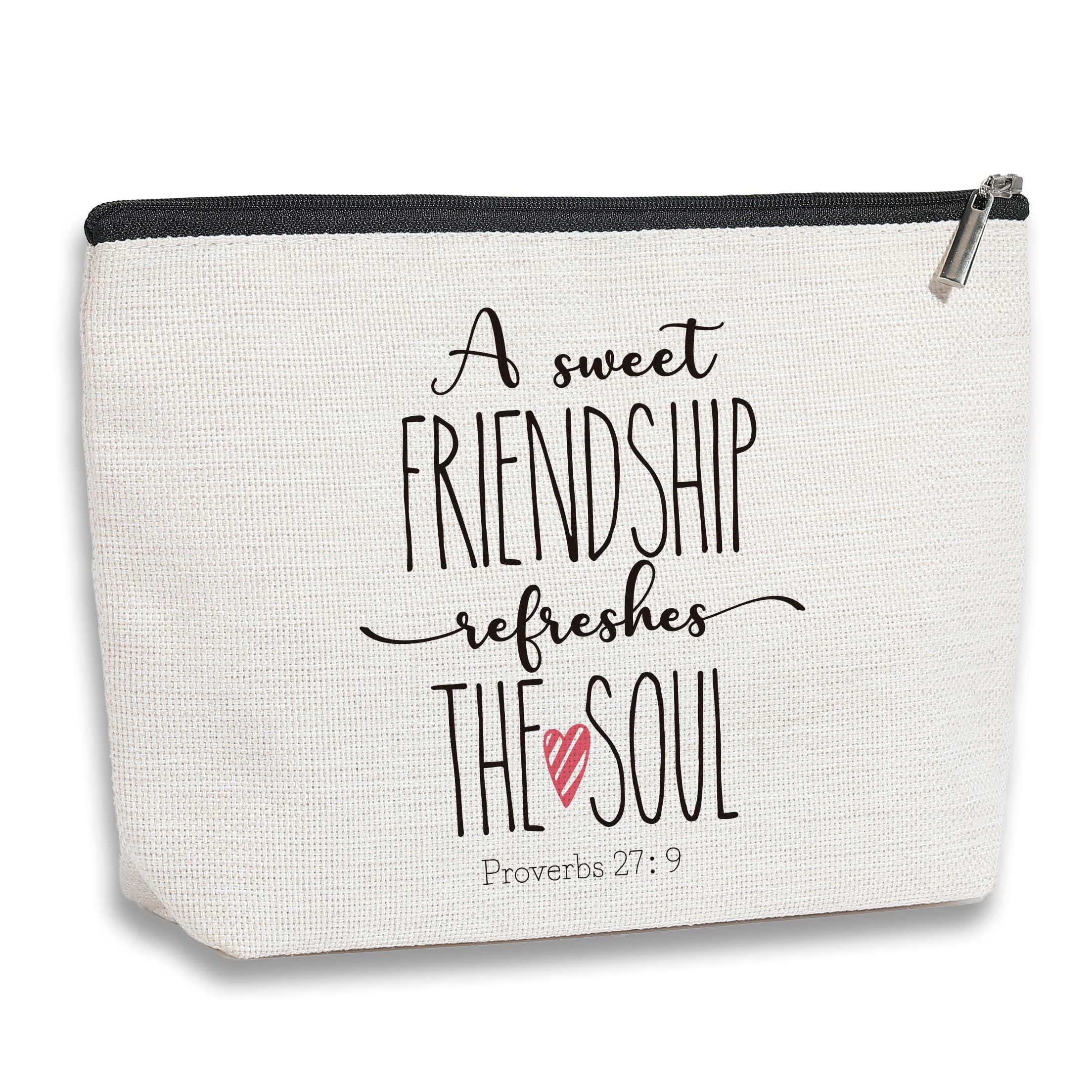 God has a funny way of showing up in the most unexpected places, such as a cute little pouch like this Christian-themed cosmetic bag! It’s a great reminder that He’s there in your day-to-day, even in your makeup routine.