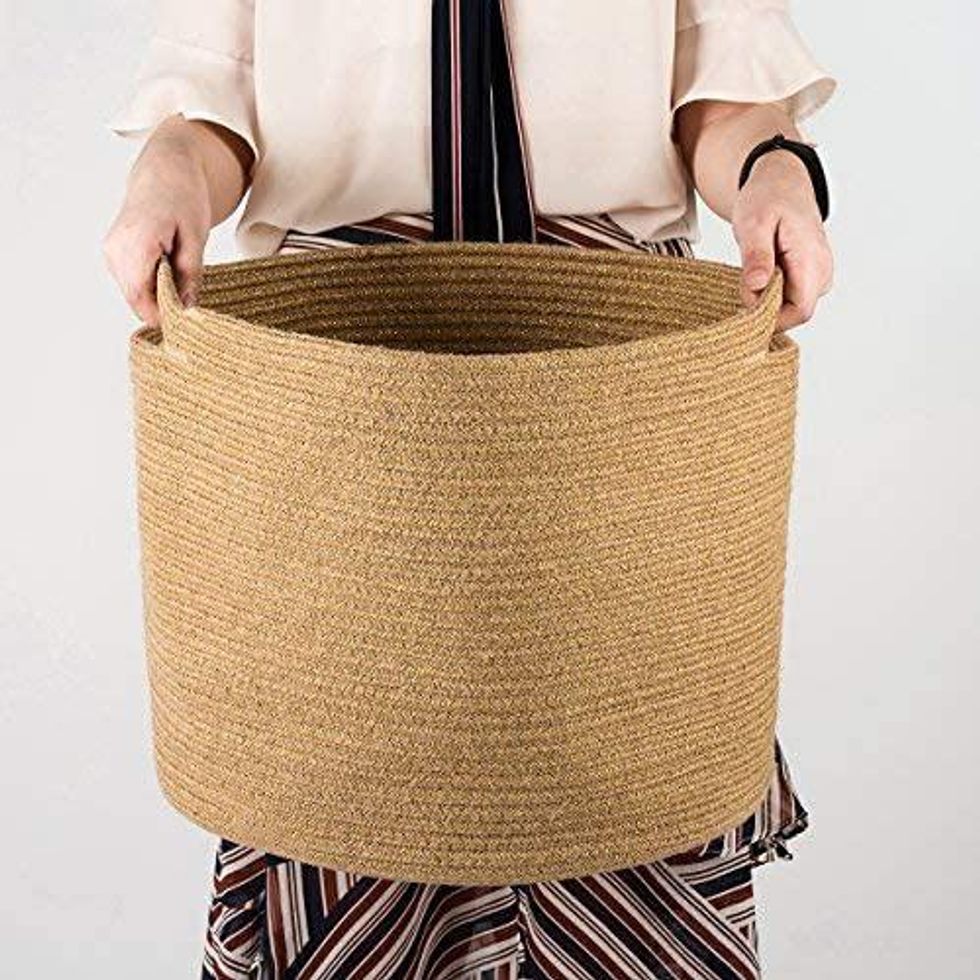 Sturdy and with handles that make it easy to carry, this woven jute basket is both stylish and practical. It could be used as a toy basket, dog toy basket or storage for blankets, clothes or towels; the uses for this basket are endless.