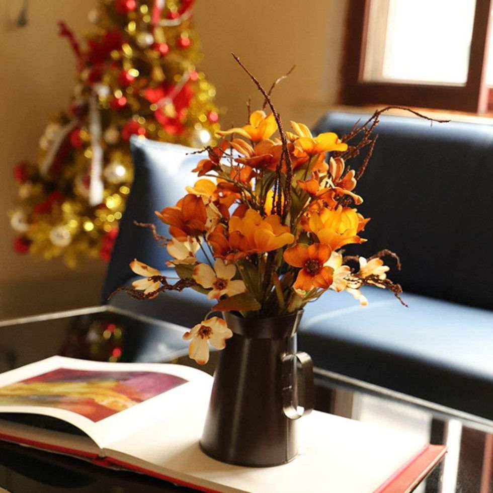 This 2-in-1 autumn bouquet and iron pitcher is perfect for those who can’t keep flowers alive but want to bring some color into their home. A combination of dark branches and bright flowers, this bouquet is realistic, effective, and helps to adds an autumnal feel to any room.