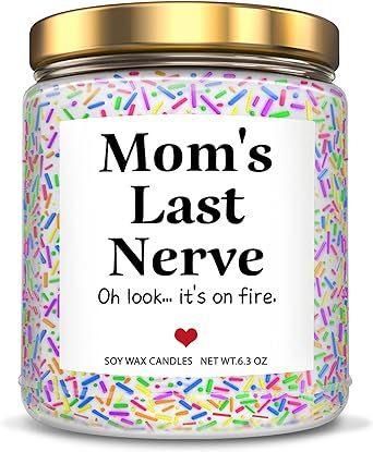 It’s no secret that mom’s love candles. It’s also no secret that from time to time, her kiddos can make her a tad bonkers. Combine the two in this adorable candle. “Mom’s Last Nerve” is on fire…..again. The upside is it’s made with soy wax, so it smells incredible, even when mom is “fuming”. (Get it?)