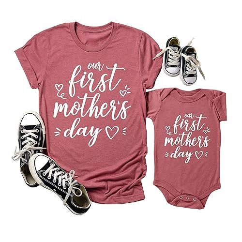 For your first-time moms out there, this one is definitely for you. This onesie and shirt set is ready to capture your first Mother’s Day in style. Great for pictures, you and your baby will match for all those pictures you’ll look back for years to come.