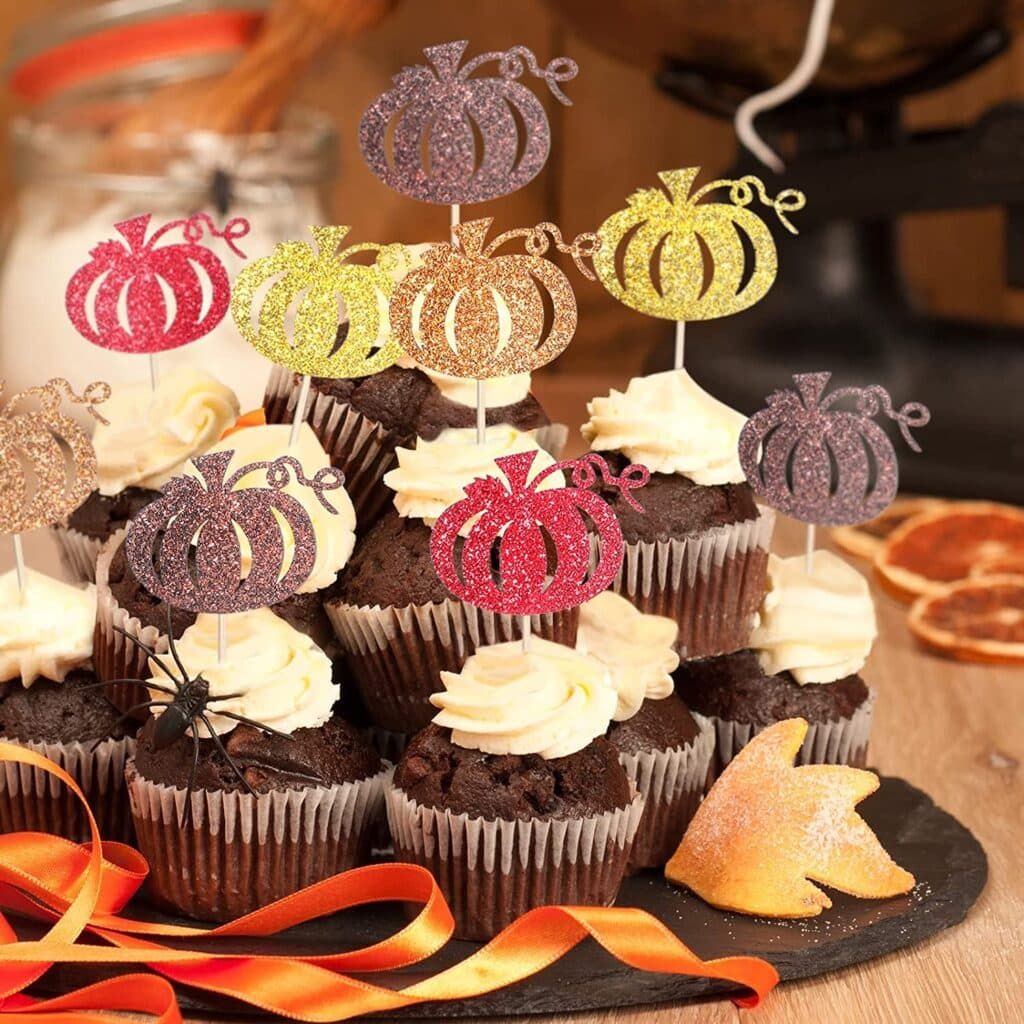 Pretty Up Cupcakes with Glittering Pumpkin Toppers