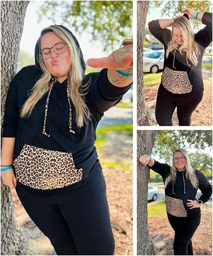I feel like this girl is my spirit animal, not only because she clearly loves leopard print but also because she looks — you know what’s coming — comfortable. Instead of an all-over leopard print, this hooded sweatshirt majors in the minor with leopard drawstrings and kangaroo pocket. Be sure to peep the other options because that black plaid is the unofficial color of the season.