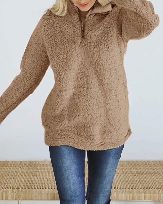 If I could live in just one piece this season, it’s this sherpa pullover, which is giving all the cozy vibes. Long-sleeved with a zippered closure, this fabulous fleece sweatshirt is like wearing a soft, warm blanket while looking stylish and not like you shouldn’t have gotten off the couch (even if you didn’t want to). A smooth knit interior, straight hem and side pockets complete the look.