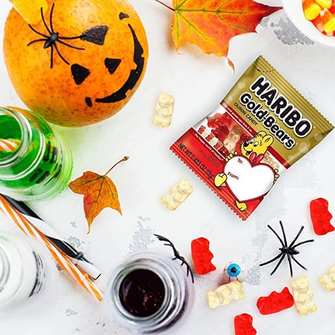 Gummy bears are old school, but they’re an absolute classic. You can’t go through Halloween Night without handing out some gummy bears. They’re tasty and also adorable. Plus, you can get them in these spooky-themed red and white packs that remind me of blood and vampires and all things Halloween.