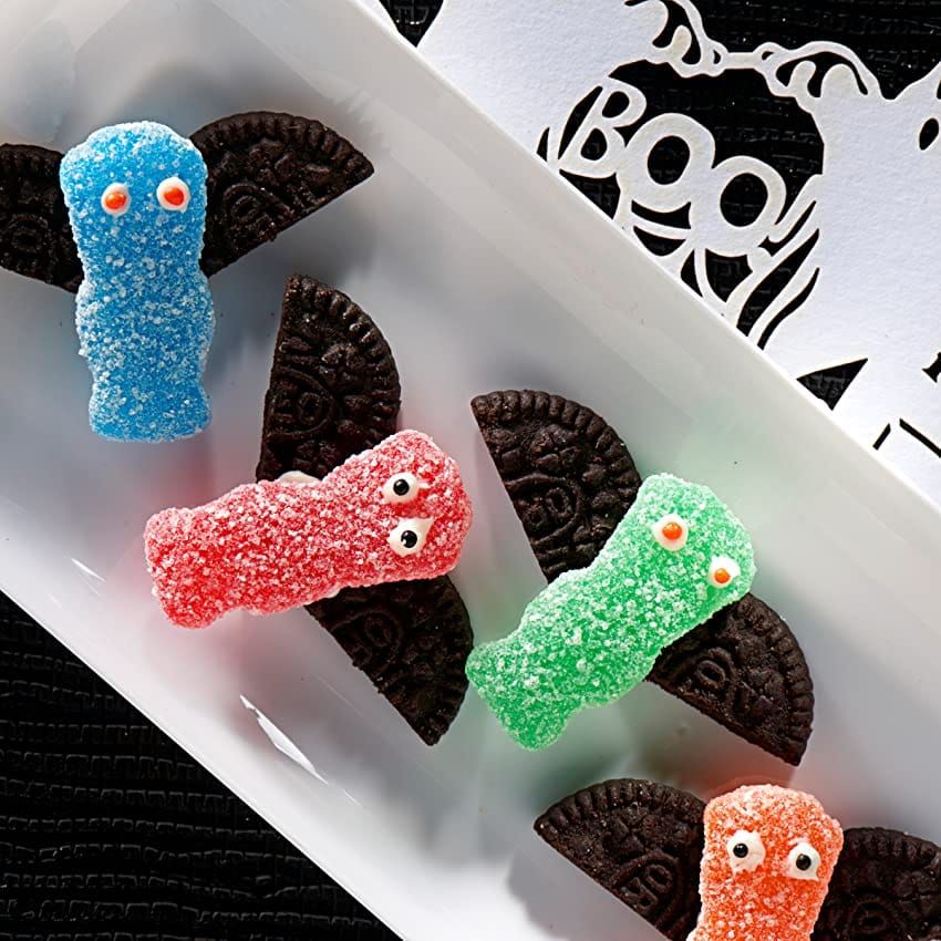 You’ve got to have some sour patch kids! Sour gummies are a great option for the kiddos that don’t love their candy too sweet or for the grown ups that like a bit of a punch. Not only are they great options to give out, you can also do all sorts of fun decorating with them for a spooktacular Halloween spread!