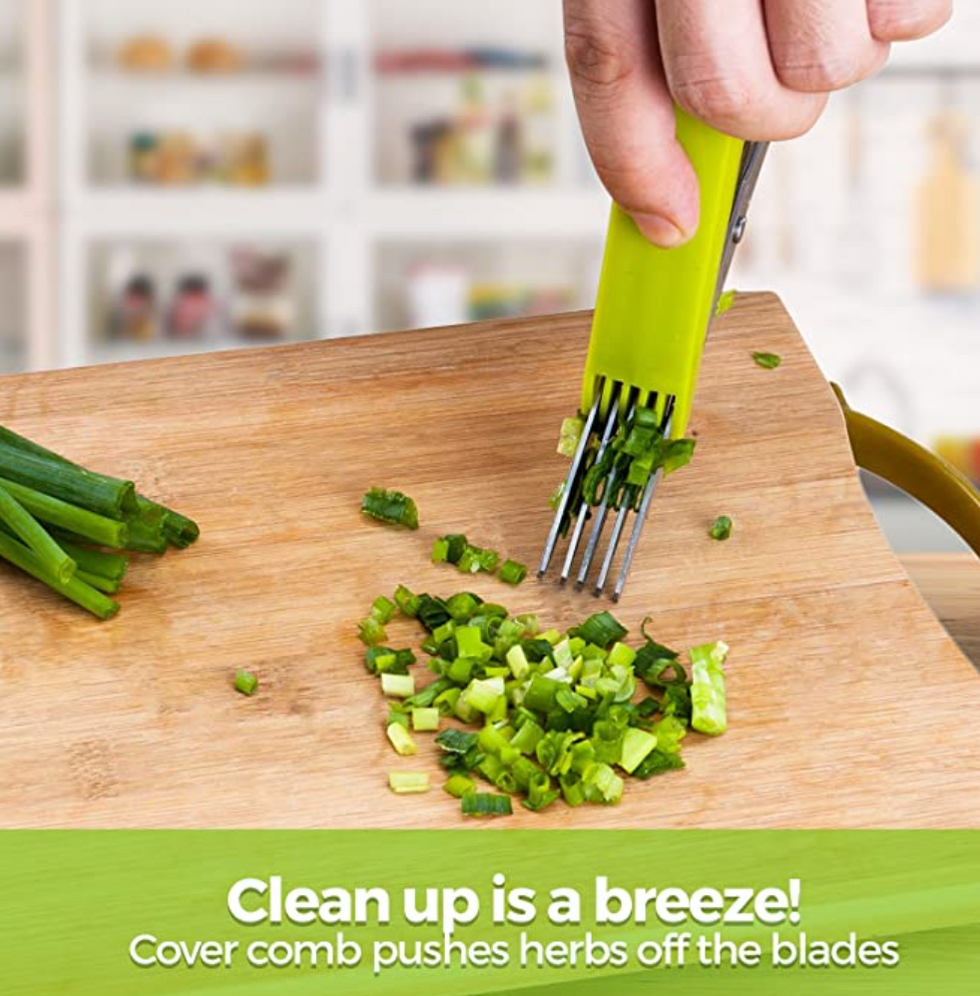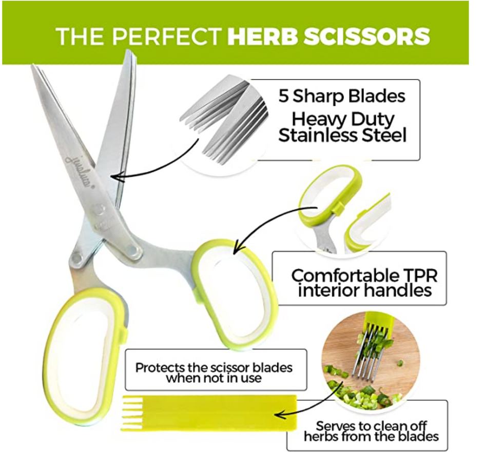 Chopping herbs with plain old scissors can be a little tedious at times, and extremely difficult! But you no longer have to worry about that with these 5-blade herb cutting scissors