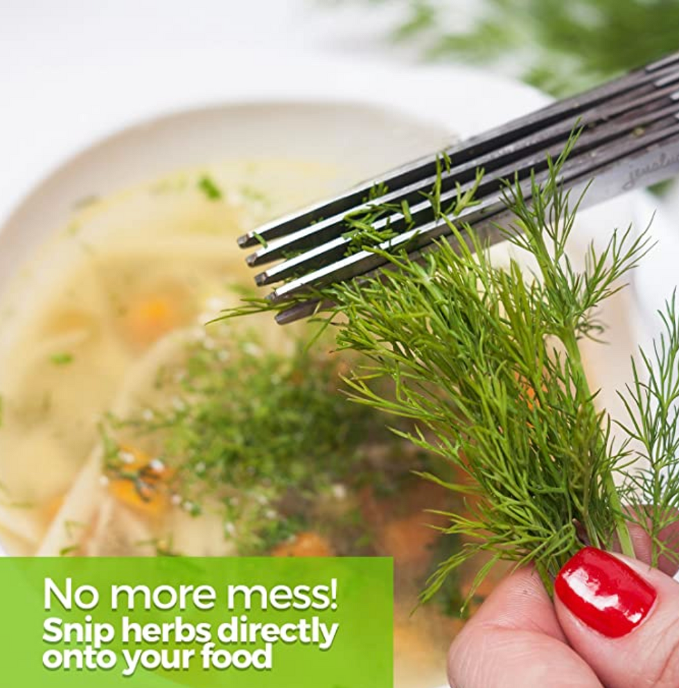 “I like to grow herbs and use them in salads, soups, and many other recipes. I received these Jenaluca Herb Scissors as a birthday gift, and can’t believe how fast and easy it is to cut up cilantro, basil, parsley, lovage, etc. My husband tried them today too for the first time while making guacamole, and found that slicing the cilantro went very quickly. The storage case-cleaner is very efficiently designed too. I ordered 4 of these sets to give as gifts,” one reviewer wrote.