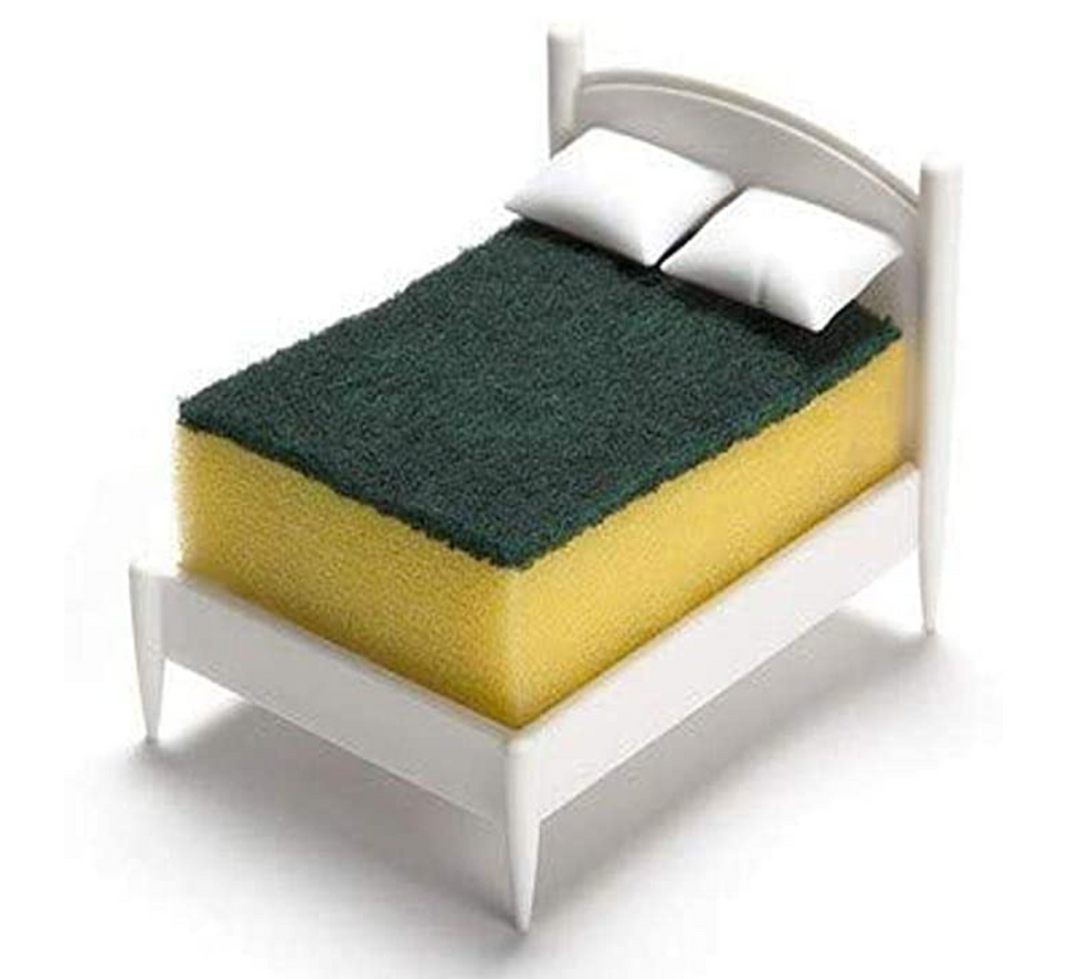 Once your dishes are all clean, you can lay your sponge in its bed, “complete with two pillows for a snug tuck.”
