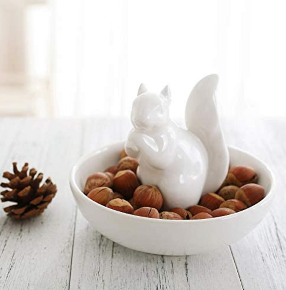 The LA JOLIE MUSE Nut Bowl Snack Serving Dish teamed with a ceramic squirrel is certainly the cutest way to serve your favorite healthy snacks!