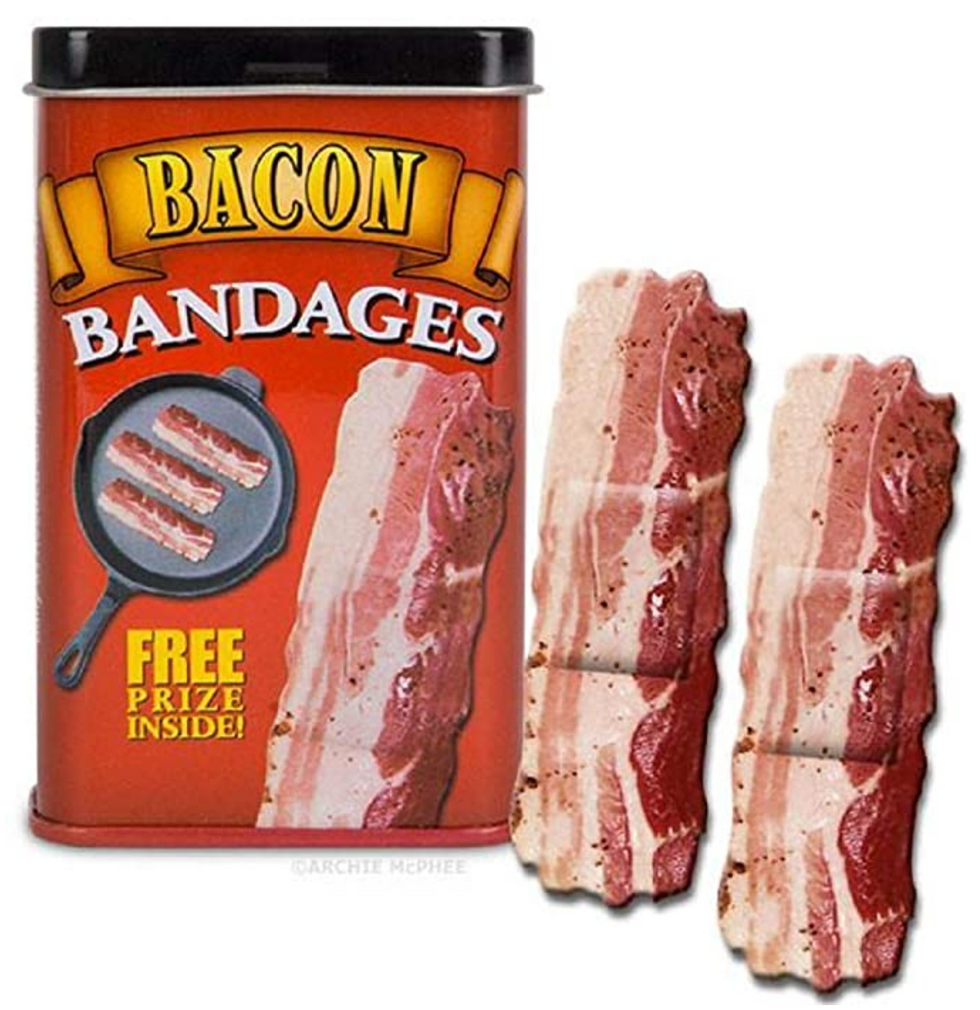 Gone are the days of boring bandaids! These bacon strip bandages are where it’s at.