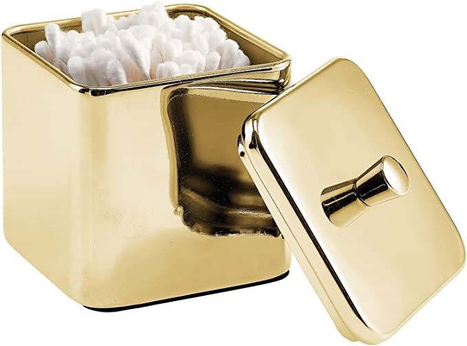 Keeping small items out of the way in the bathroom can be a big battle. I ended the struggle with the right storage containers. This square apothecary jar is versatile and an attractive piece of bathroom decor too. It works for small items like cotton swabs and is suitable for bath salts and bombs as well. I love adding a little glitz, and this jar comes in metallic options that impress.