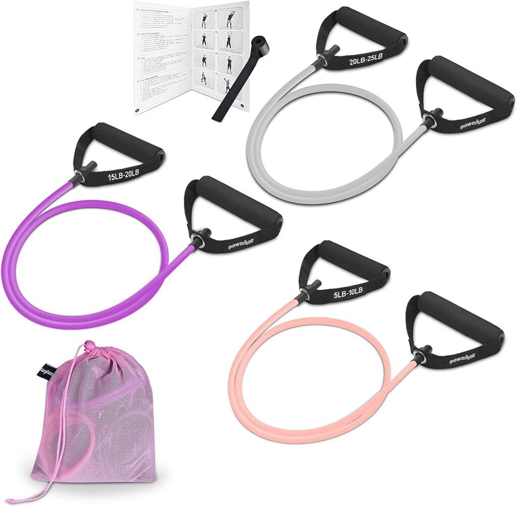 I love resistance bands. They build strength, tone all the major muscle groups, and pump up my core power. But this workout isn’t just about power. It’s also about flexibility. The best part is I can take them anywhere with the handy mesh travel bag! These resistance exercise bands make me feel like I can take on the world.